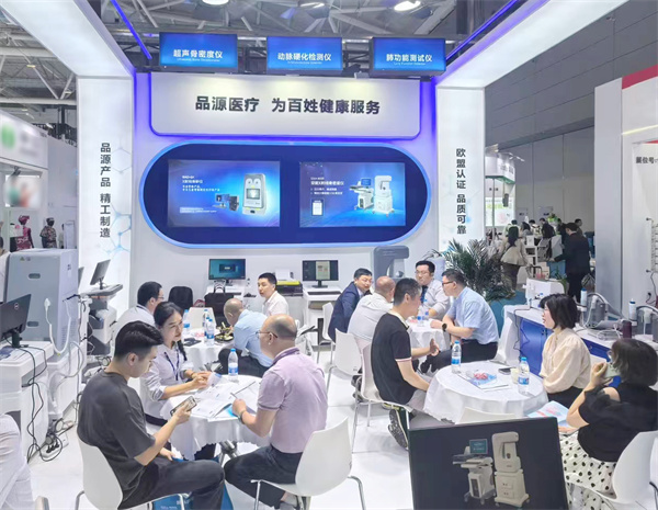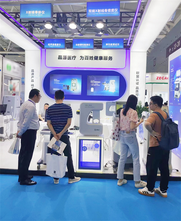 在這場醫療科技的盛宴中,品源醫療以其非凡的創新實力和精湛品質,成為了展會中的一顆璀璨明珠。此次展出的雙能X射線骨密度儀超聲骨密度檢測儀X射線骨齡儀動脈硬化檢測儀以及肺功能測試儀系列產品,憑借著檢測精準,人性化的設計理念以及舒適、便捷的檢測體驗,吸引了眾多國內外客商和專業人士的目光。