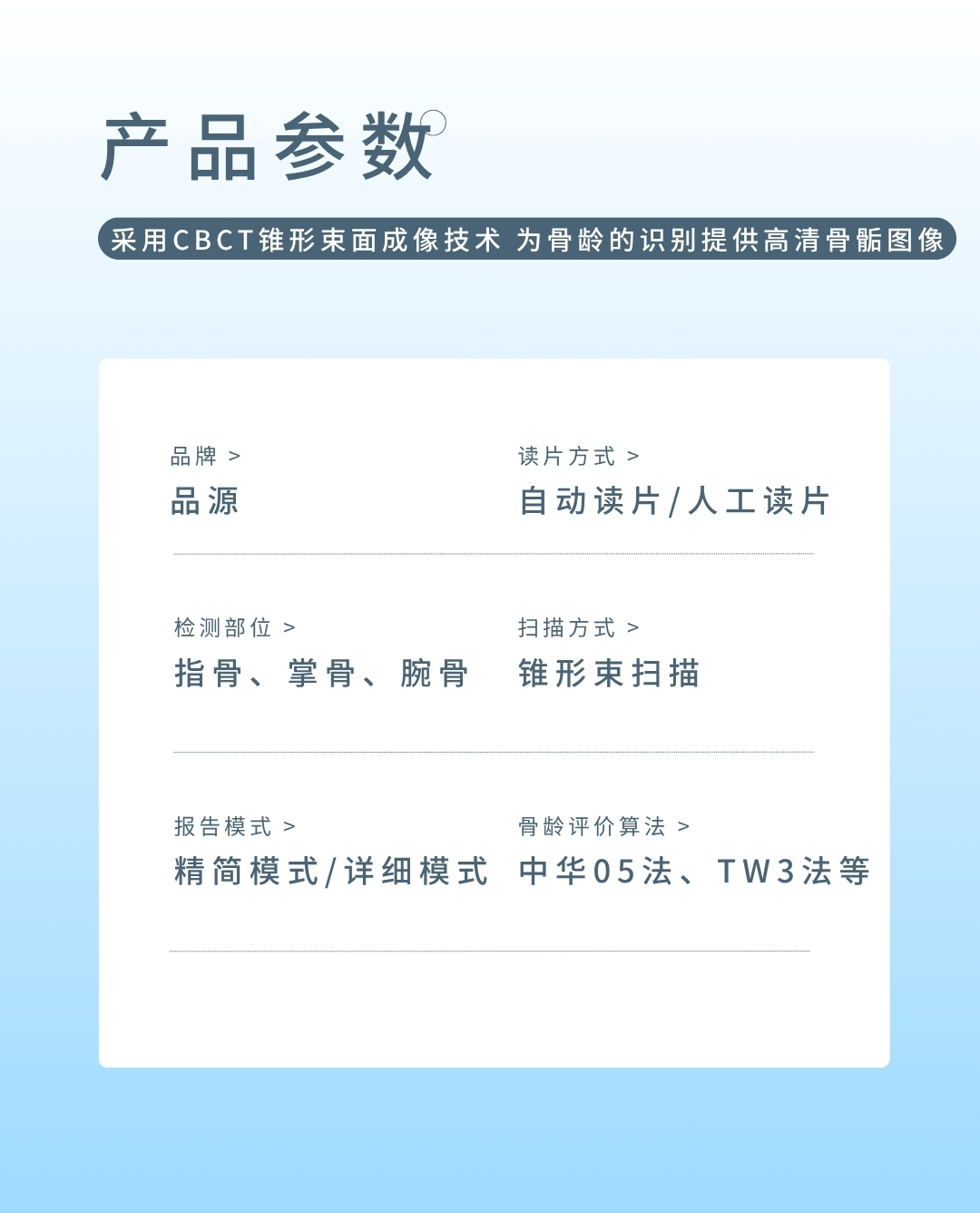產品適用兒童醫院、婦幼保健院、各級醫院的兒保科,體育研究機構,體育學校等,用于對青少年骨齡檢測與體格發育評價。